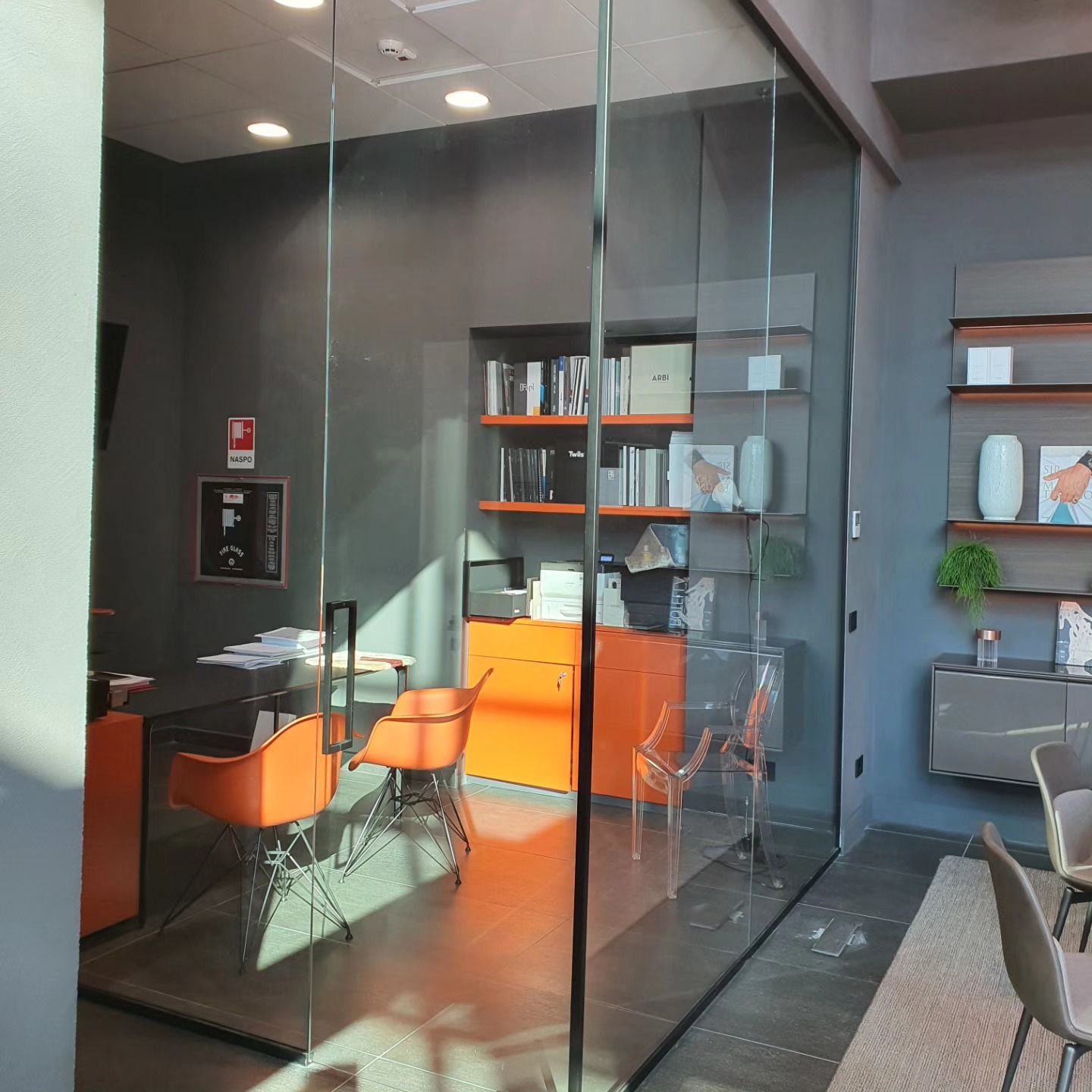 L'arredo ufficio in cristallo conferisce un aspetto professionale e moderno agli spazi lavorativi. Dalle scrivanie alle pareti divisorie, ogni elemento è progettato per migliorare l'estetica e la funzionalità dell'ufficio, creando un ambiente di lavoro piacevole ed efficiente.