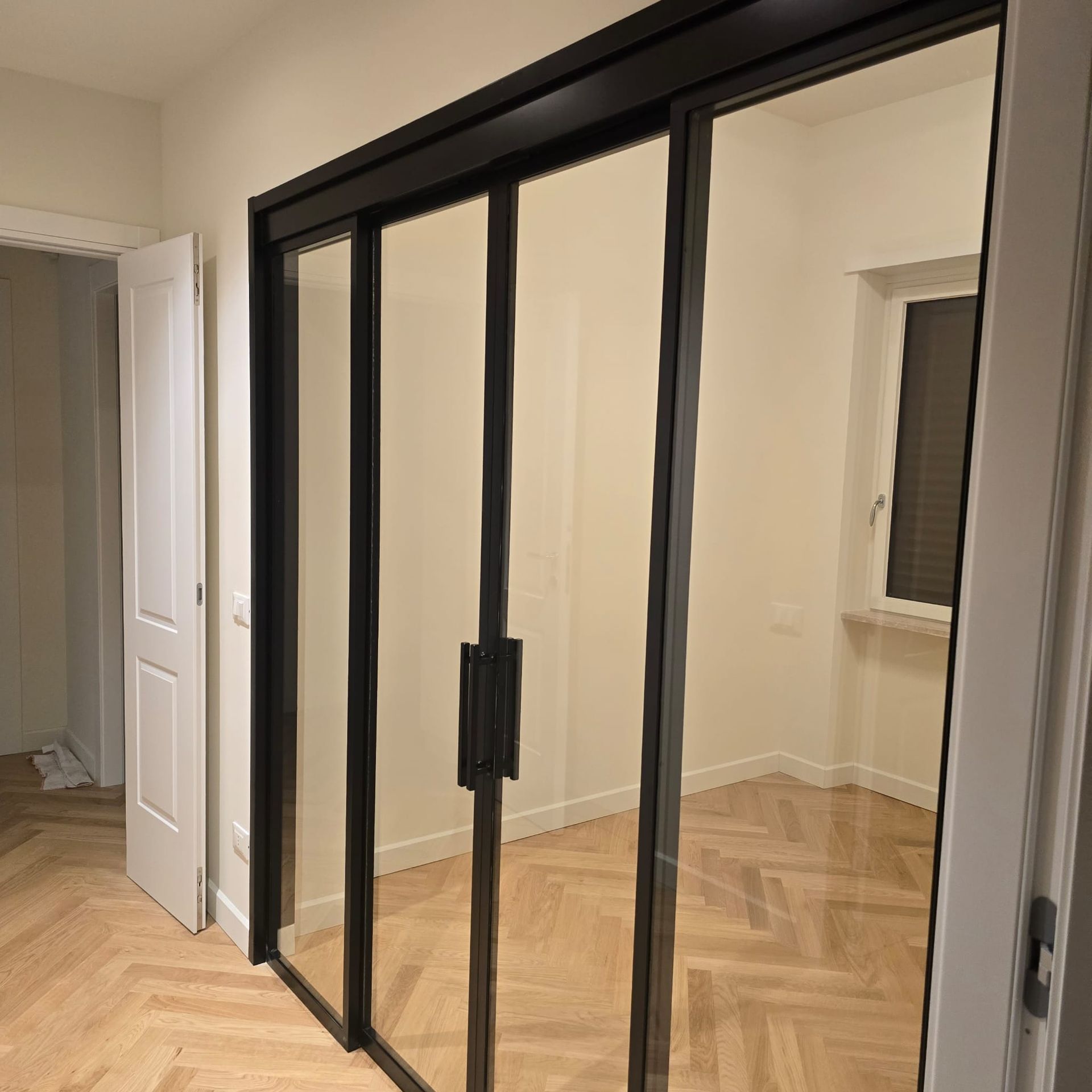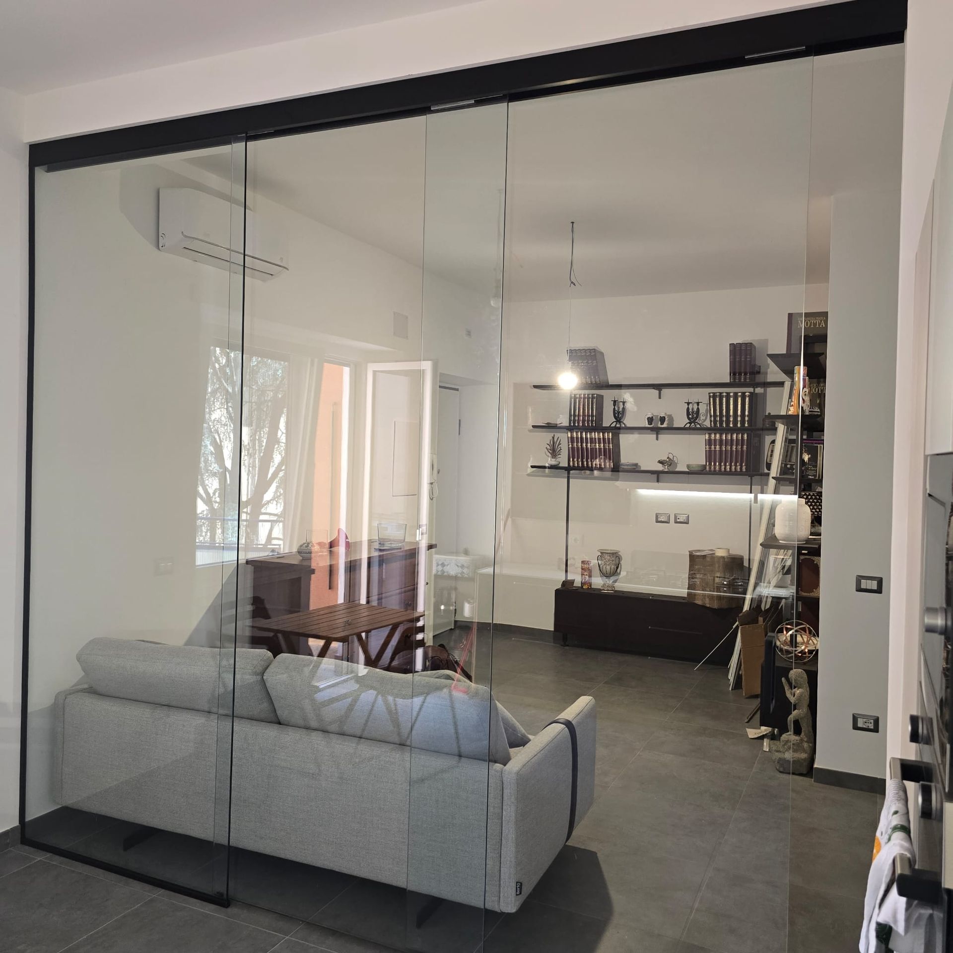 Le nostre porte scorrevoli in cristallo sono ideali per ottimizzare lo spazio, garantendo al contempo un look moderno e raffinato. Disponibili in diverse finiture e configurazioni, queste porte uniscono praticità ed eleganza.